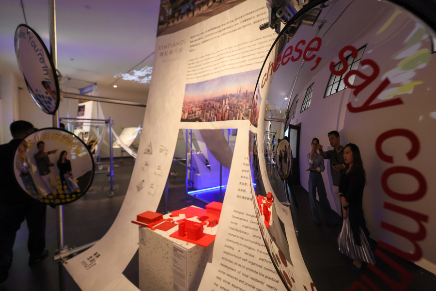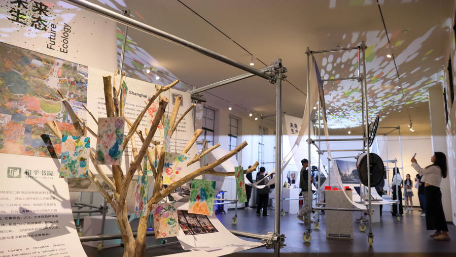 展区以“生成:城升”为主题,结合虹口区打造北外滩“世界会客厅”和“科创街区”的创新实践,通过8个跨媒介创作,将虹口区的5个社区、15家科创企业与15个国际前沿案例融合展示,从生域、生产、生态、生活、生机五方面,搭建跨界协作的共创平台。