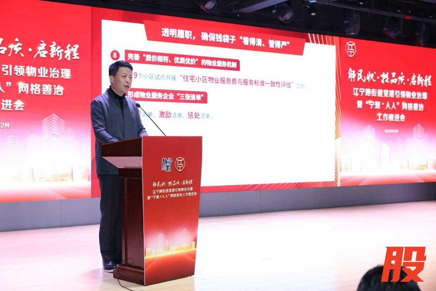 大会集中发布《江宁路街道2026年深化推进党建引领物业治理的工作举措》,以13条精准举措构建了“红色引领、透明履职、聚力协同”的治理体系。其中,《住宅小区物业服务企业三张清单》(职责清单、奖励清单、惩处清单),致力于提升物业服务企业在基层治理中的作用发挥,推动物业服务从“管理”向“治理”转型。继续加大力度探索从“一件事”到“一类事”的治理路径,着力解决装修扰民、油烟扰民、楼道堆物、群租回潮、物业选聘等一批高频物业治理难题。